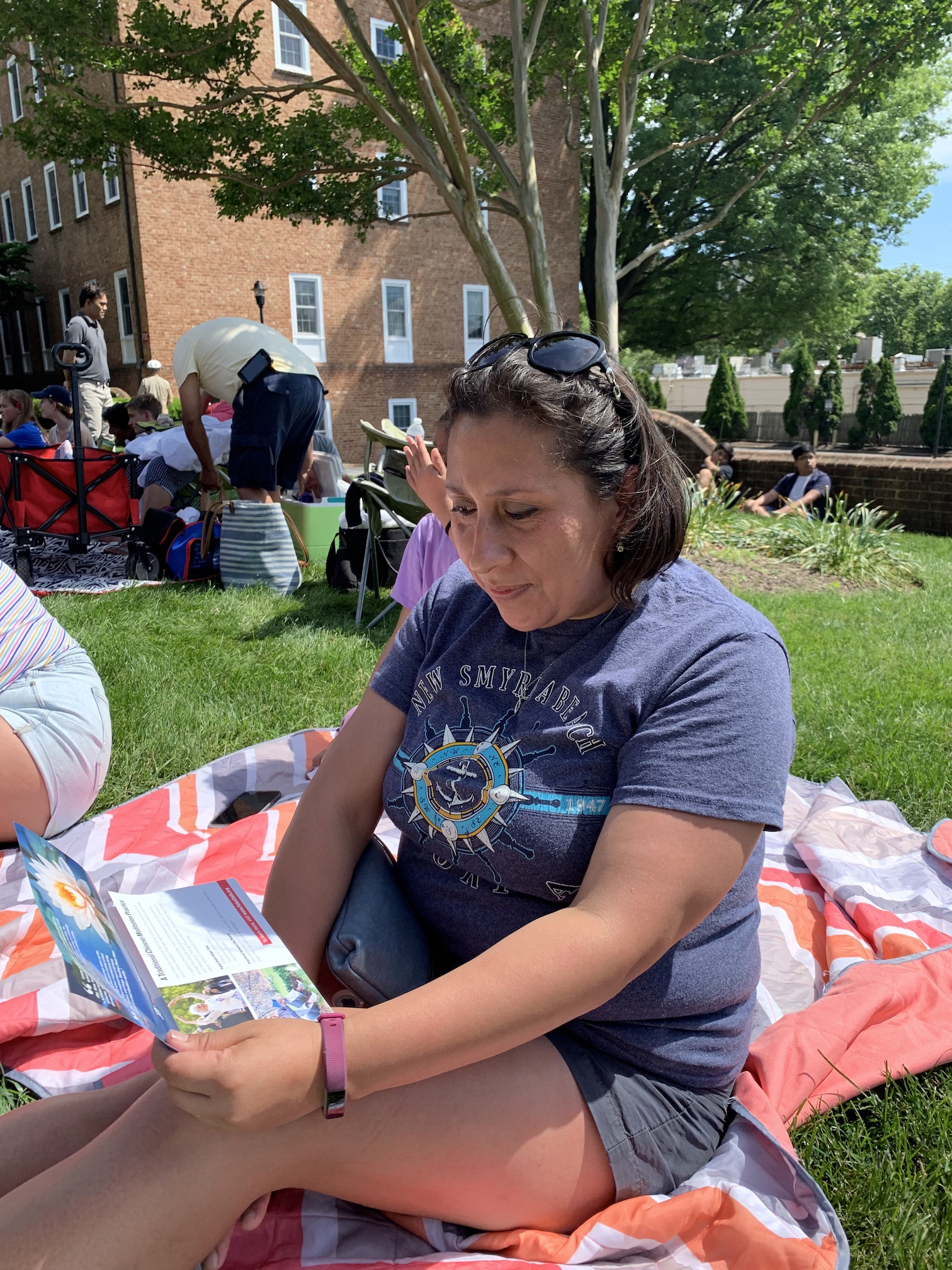 卡拉·莫拉(Karla Mora)在瀑布教堂市的一家小学办公室工作。她留意到法轮功学员腰鼓队中的老年成员,并羡慕她们充满能量。她说看了法轮功的传单,知道这是冥想(meditation)。她觉得有兴趣想知道更多。莫拉女士指着传单上引用的一段法轮功学员的话说,“这个人的见证吸引了我。她修炼了五年后,找到了全新的能量。这对我来说很有意思,而且非常抢眼。”