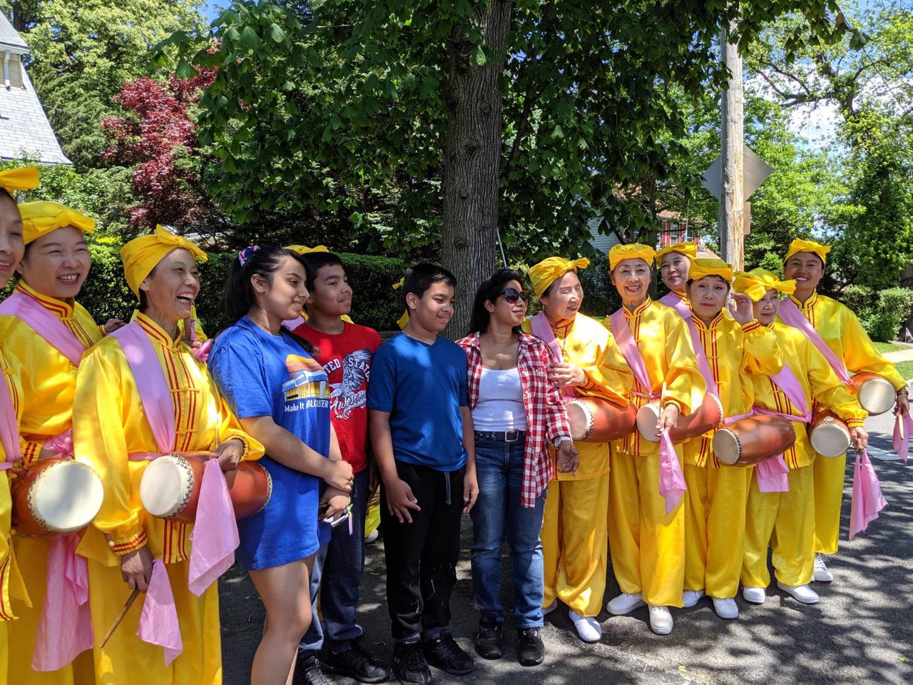 法轮功学员的队伍由条幅队、功法演示队、彩旗队、腰鼓队四个方阵300多人组成,在历时两个小时的游行当中,法轮功学员亮丽的服装、饱满的精神风貌受到民众的热烈欢迎。人们拍照、录像,有的跑过来与学员拥抱、合影。