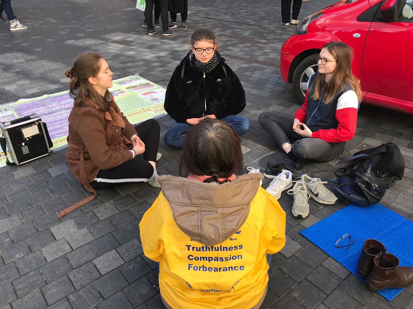面对眼前祥和的炼功场面和友善平和的修炼人,当他们听到法轮功在中国却被迫害都很震惊。一个女学生看了很久,详细了解很多信息。她说:“这太不可思议了,共产党害怕失去权利,害怕人有精神方面的信仰。按真善忍做人是内在的,人有了自己的思考,(中共)就不能控制了。”
