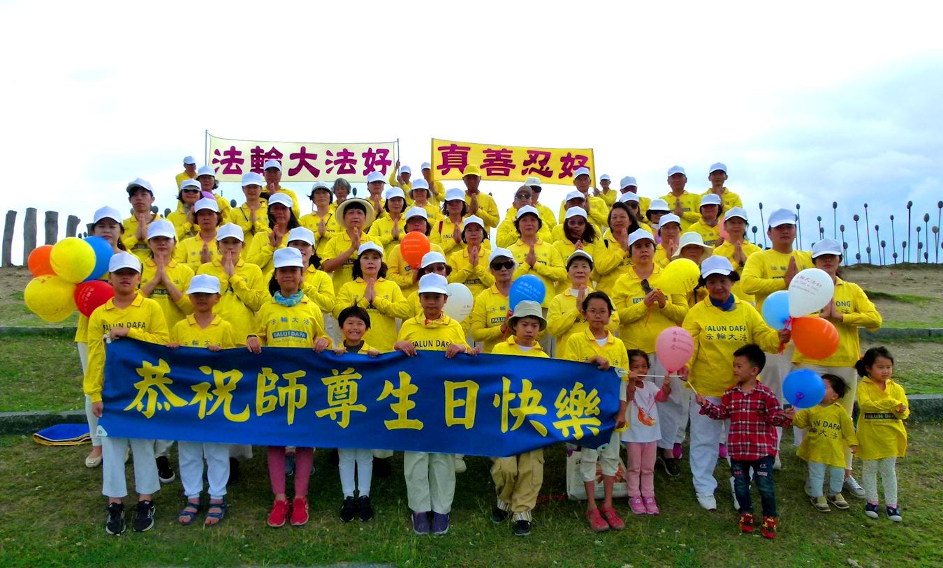 ![]() 图一:台东法轮功学员恭祝师父生日快乐。 |