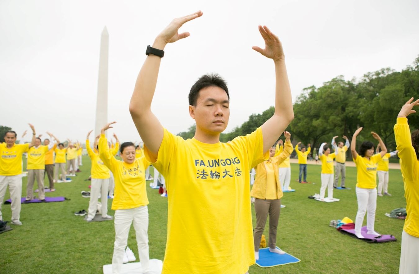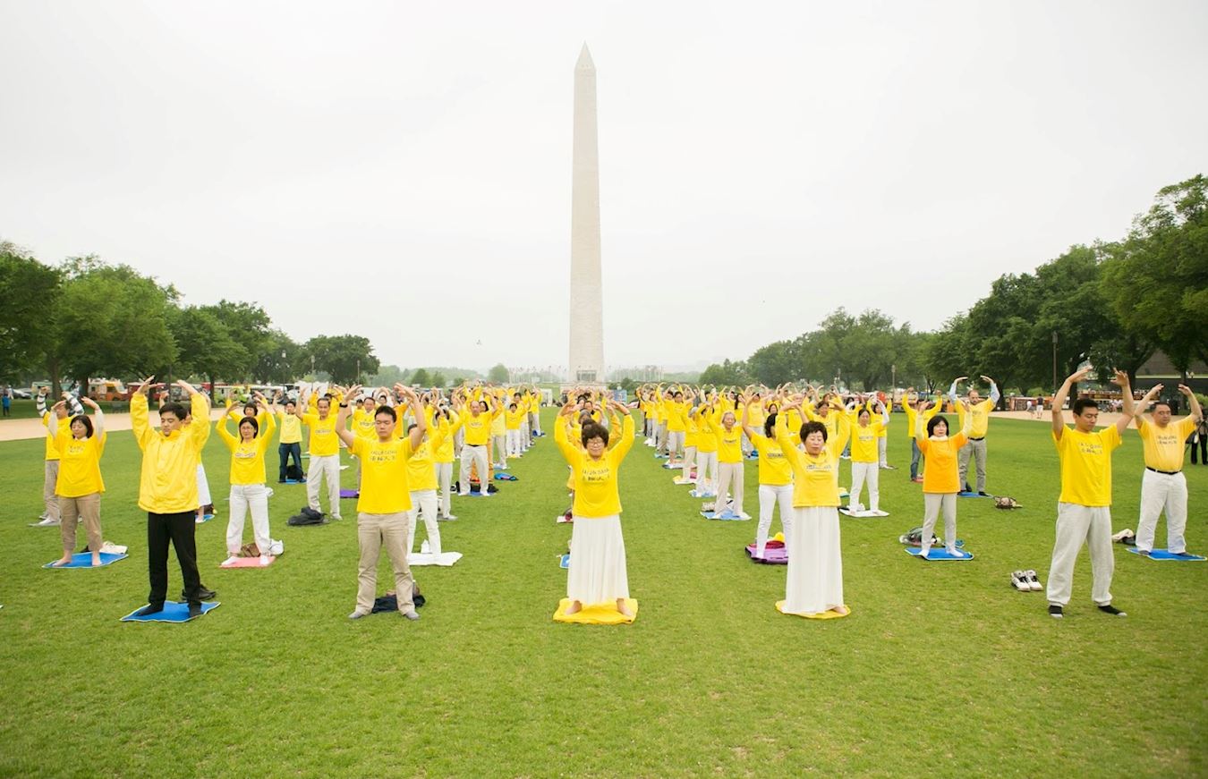 ![]() 图2:二零一九年五月四日,美国首都华盛顿地区部份法轮功学员聚集在美国国家广场集体炼功,庆祝“世界法轮大法日”。 |