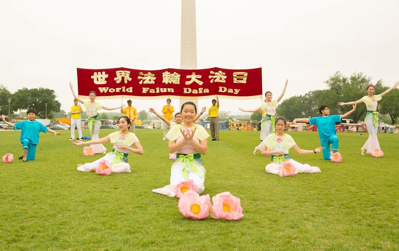![]() 图5:二零一九年五月四日,在美国首都华盛顿的“世界法轮大法日”庆祝活动上,明慧学校的大法小弟子表演舞蹈《插莲花》,寓意大法弘传世界。 |