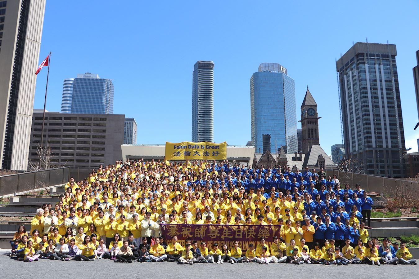 ![]() 图1:多伦多法轮功学员在第二十届世界法轮大法日恭祝师父生日快乐! |