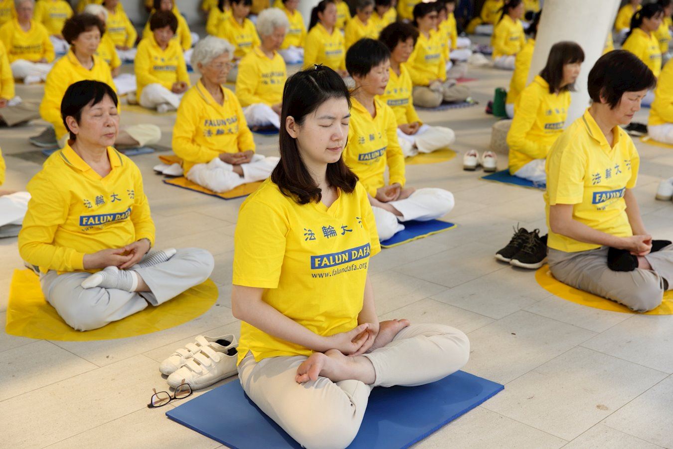 ![]() 图9:二零一九年五月五日,新竹部份法轮功学员聚集在交通大学浩然图书旁,集体炼功,庆祝“世界法轮大法日”。 |