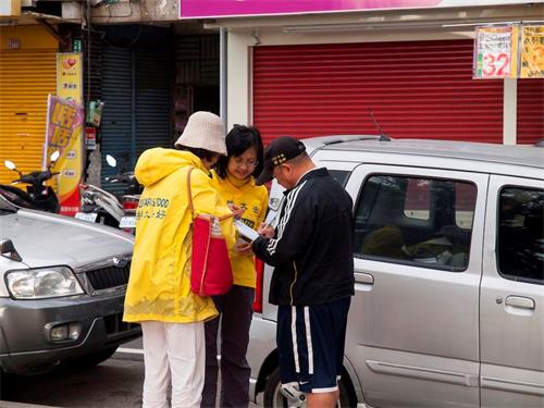 内坜学员欧阳小姐表示,遇到有的民众一开始听到是法轮功,也知道大陆的非法打压,有的因为被负面不实的媒体讯息而不敢签。但是听到签名是支持信仰自由,全世界都可以炼法轮功,只有大陆不给炼,正义的签名可以早日结束迫害,和台湾一样拥有信仰自由,民众善良的本性就会被唤醒,也愿意参加连署。有的接过学员赠送的法轮功简介、真相资料,了解法轮功是好的,也签名表示支持。