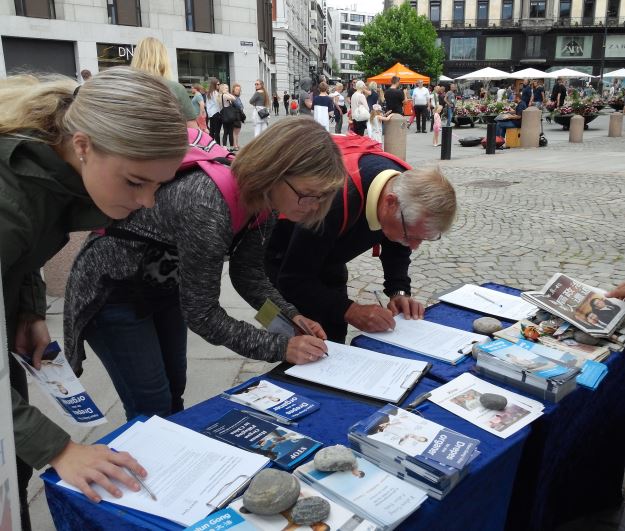 在挪威,随着法轮功的真相的广泛传播,越来越多的善良民众了解真相后,站在真理和正义的一边,为自己选择了美好的未来。