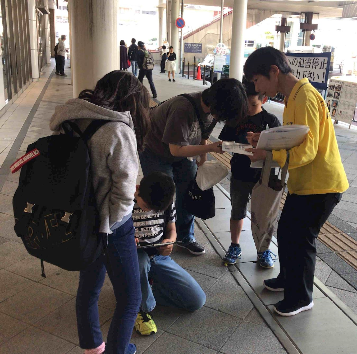 图1~7:熊本法轮功学员聚集在山口县的JR下关站前,进行了举报江泽民联署活动 |