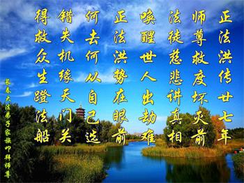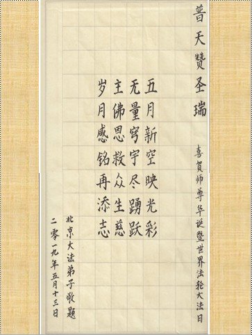 感恩师尊将万古不遇的宇宙大法洪传于世,让旧宇宙中的生命有希望同化“真、善、忍”宇宙特性。从而走入未来!