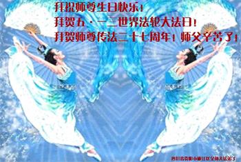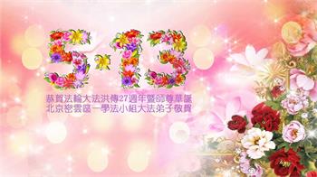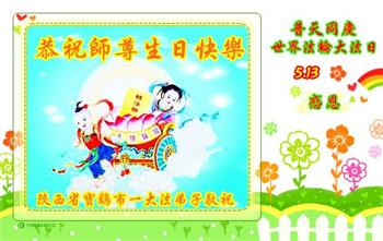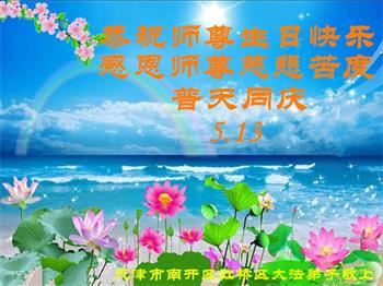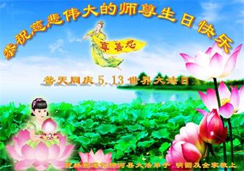 在普天同庆的“五·一三”世界法轮大法日到来之际,弟子们首先恭祝慈悲伟大的师尊生日快乐!感恩师尊将法轮大法洪传世界二十七周年!更感恩师尊象慈父一样的细心保护我们走过了近二十年的艰辛的正法之路!