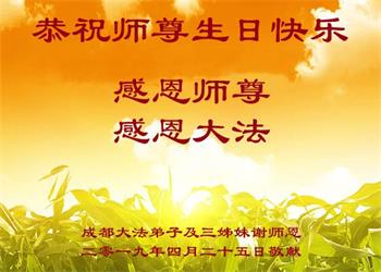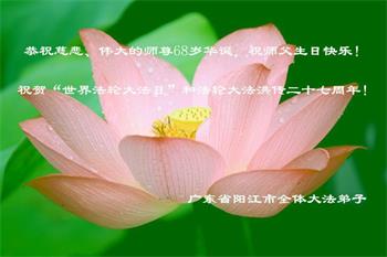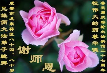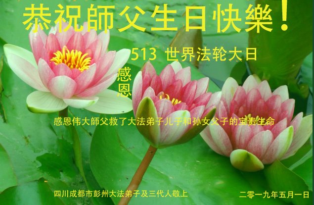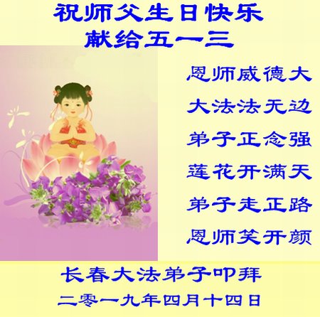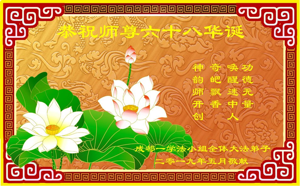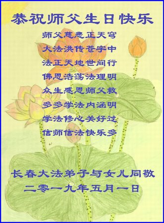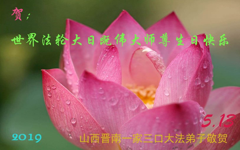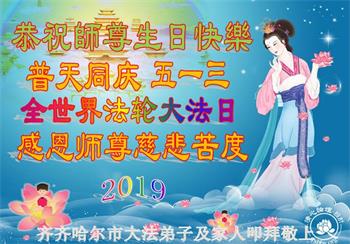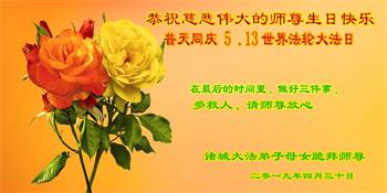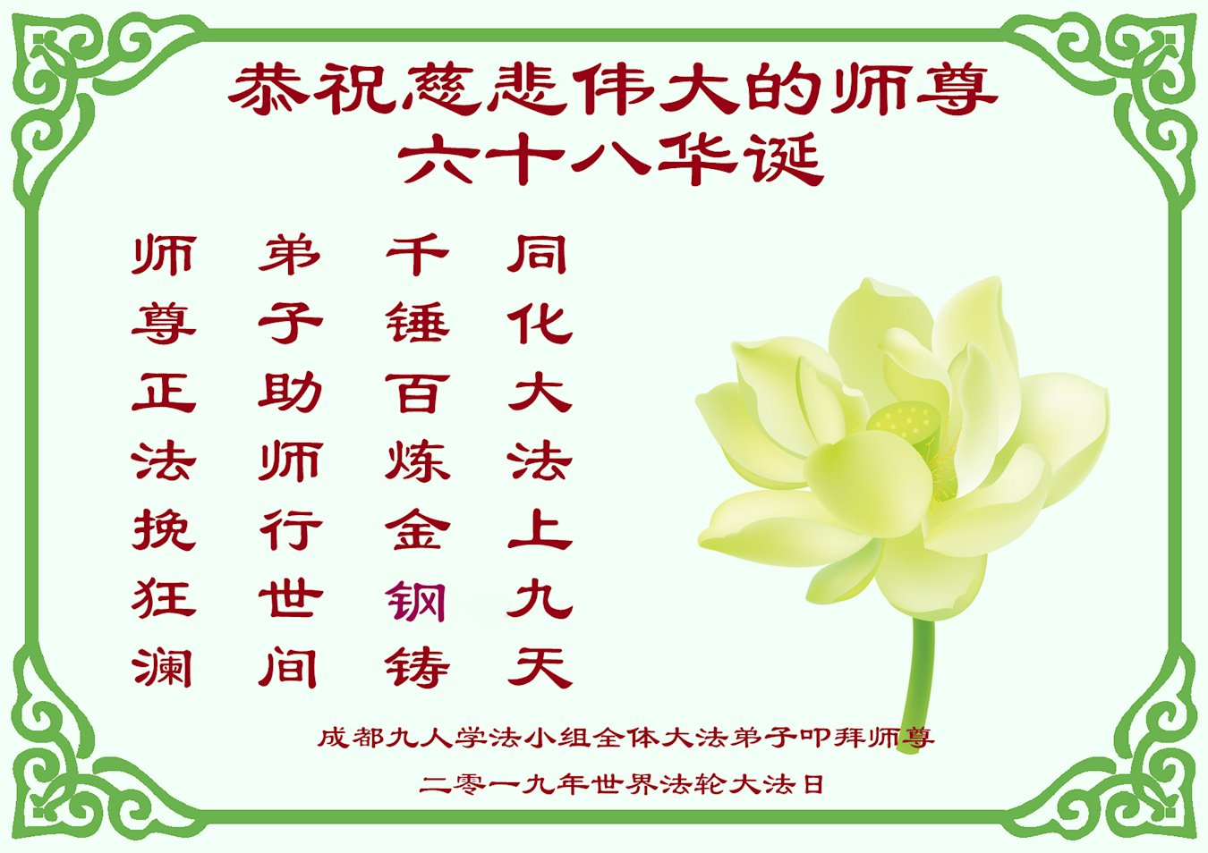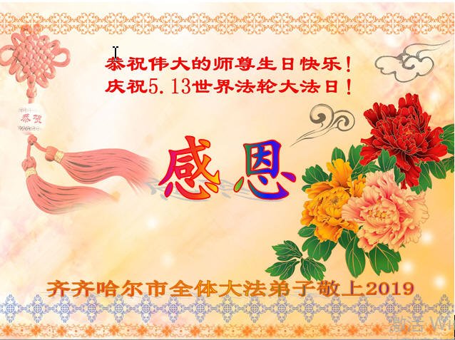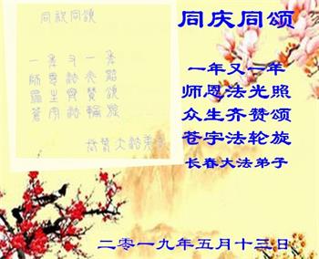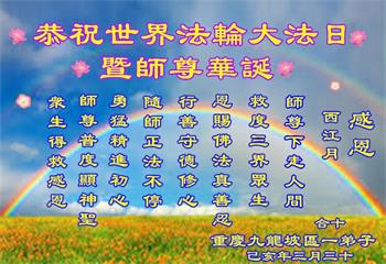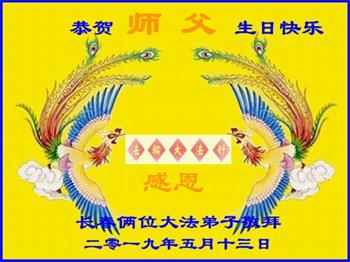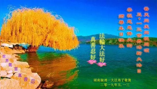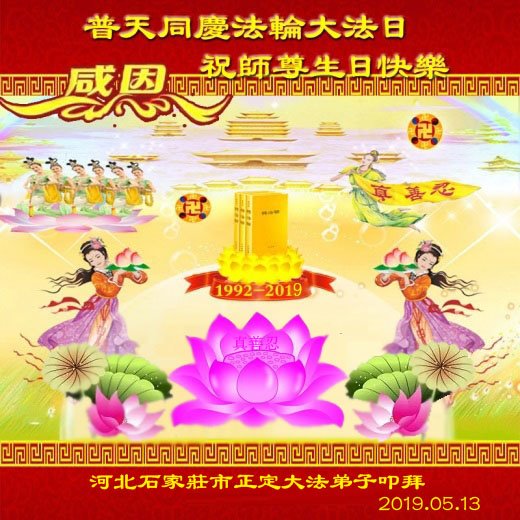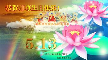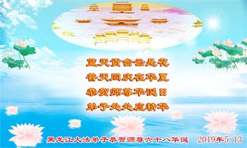 【明慧网二零一九年五月九日】(明慧网记者综合报道)法轮大法弘传世界二十七周年,第二十届“世界法轮大法日”即将到来,二零一九年五月十三日,也是法轮功创始人六十八岁华诞。在大法福泽中的各行业的法轮大法弟子给师父寄来诚挚的问候和深深的感恩。