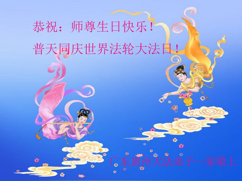 弟子恭祝慈悲伟大的师尊华诞快乐!弟子与苍穹众生共同欢庆世界法轮大法日!感恩师尊传法二十七周年!感恩师尊慈悲苦度!师尊给予弟子的、给予众生的,无法用语言描述,师尊,您辛苦了,为弟子操心了!弟子叩拜师尊!