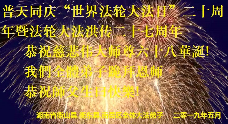 恭贺五·一三世界法轮大法日!恭祝师尊生日快乐!