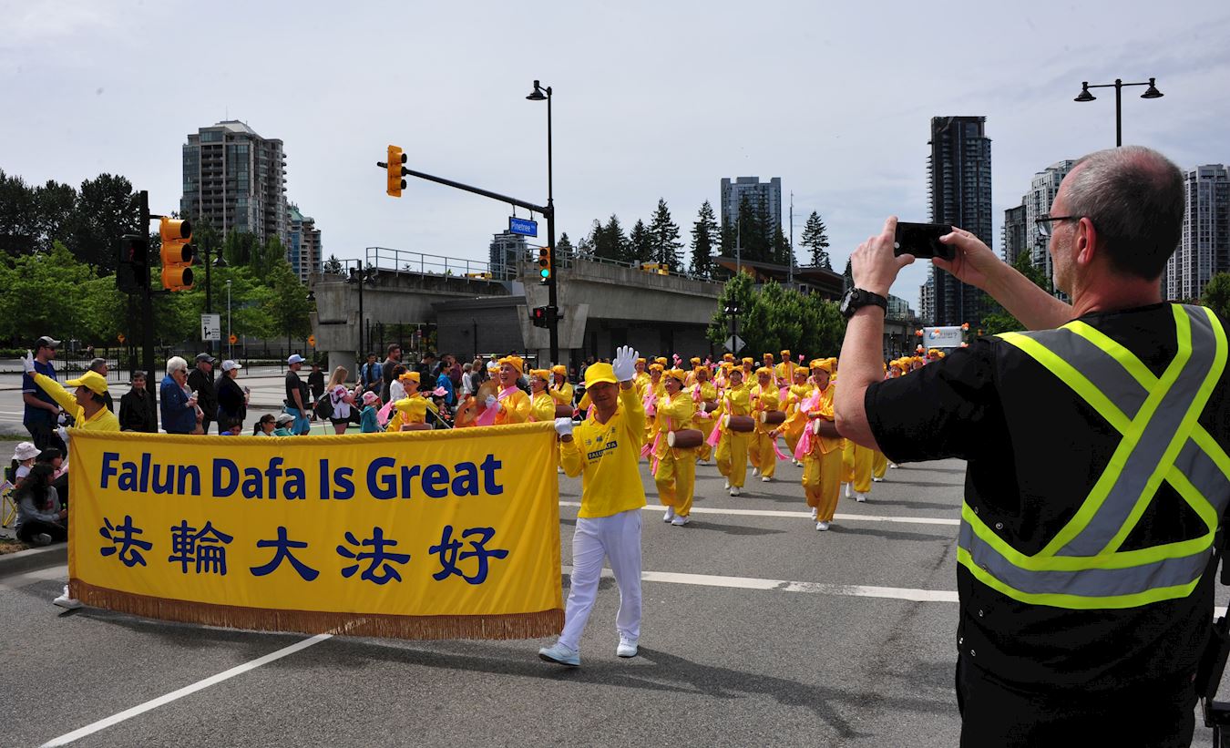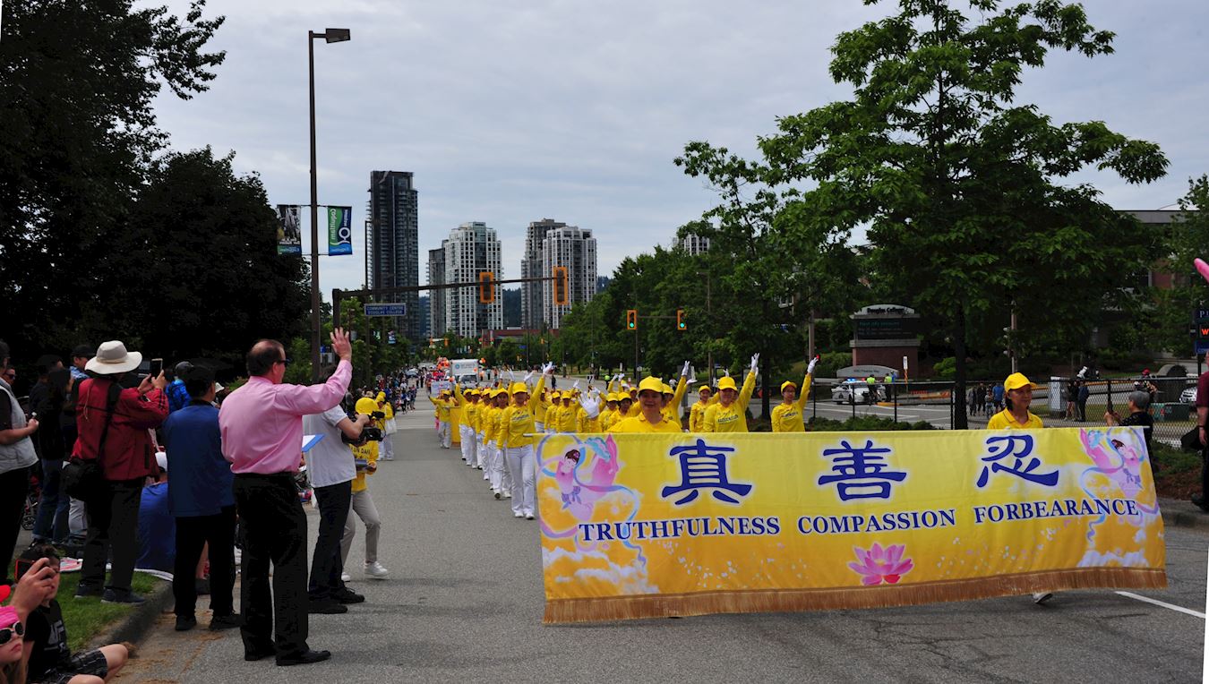 2019年6月9日,加拿大温哥华法轮功学员参加了高贵林市(Coquitlam)泰迪熊节(Teddy Bear)游行,队伍包括天国乐团、腰鼓队、法轮功功法演示队、镶嵌“真善忍”字样的花车等。当日天气温和,很多民众早早就携家带友,坐在路边等待游行开始。高贵林市近年有很多华人搬入,在路边的观众中包括很多华人观众。法轮功学员是高贵林市居民所熟悉的队伍,一路走来受到观众们的热烈欢迎,高贵林市市长Richard Stewart先生也站在主席台附近的道路中心兴奋地拍摄法轮功的游行团队。