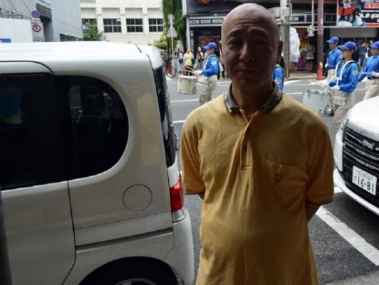从富田林市(Tondabayashi city)来大阪游玩的藤井(Fujii)先生听到有关中国共产党所施行的非法器官移植后说,“中国共产党在做这样的事情?!完全不了解。”在了解真相后他鼓励学员们:“你们要坚持到底。”