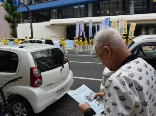 德永信一(Shinichi Tokunaga)律师自从十五年前针对向法轮功学员的迫害提起申诉以来,是一直在支援法轮功的人权律师。他表示,此次游行也有来自中国大使館的阻碍和施压。为了确认日本社会人权现状,他期待游行的成功,并希望众多日本人能借此机会睁开眼睛了解事实。