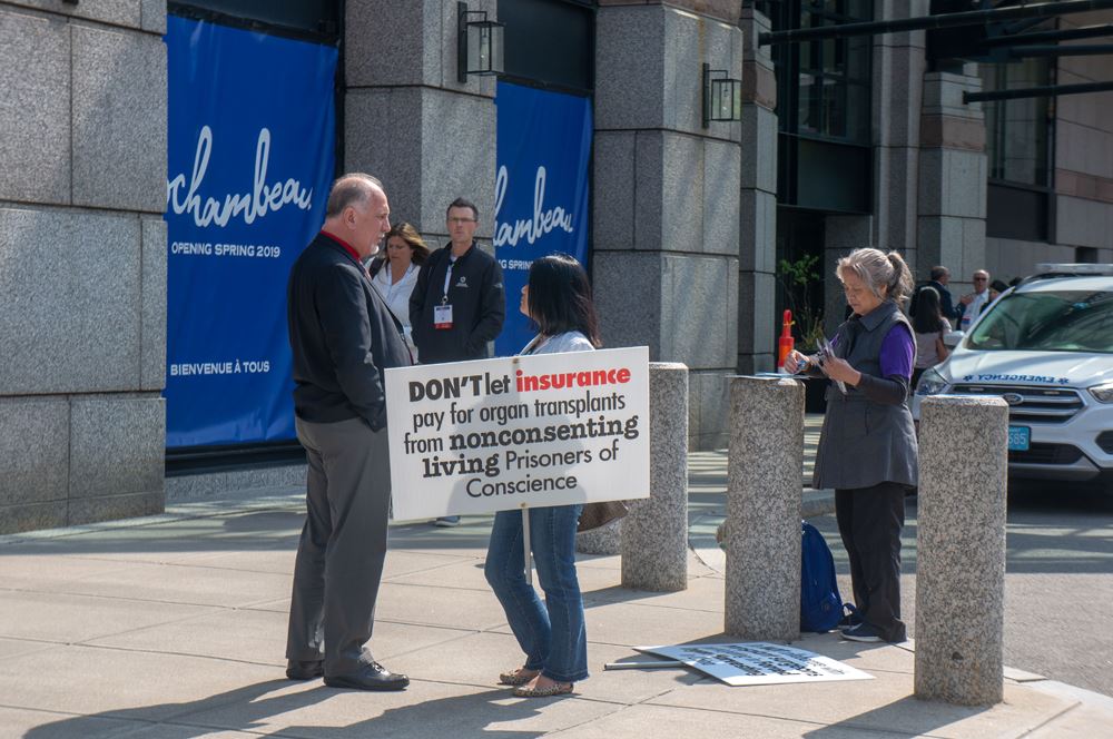 医学界人士对这次活动中传递的真相反馈也较以往更为积极,普遍反应正面。不少同修表示,三年前同样是在波士顿的这个活动,当时一些参会的医生对中共政府以法轮功学员为主要受害对象,进行强摘器官的罪行还不太了解,有的持怀疑、观望、将信将疑的态度。通过几年来全世界法轮功学员和明白真相的世人坚持不懈地传播真相,今年形势就大不一样了。很多医生在会场外接过真相资料,用手机拍下法轮功学员手持横幅标语的照片,很多会场内的医生透过落地玻璃窗拍照,并告诉学员会把照片发到社交平台,为这个活动做宣传。更有医生要把照片发到川普总统的Twitter上要求总统为反活摘发声。