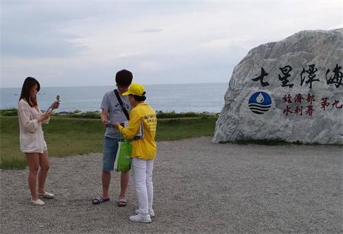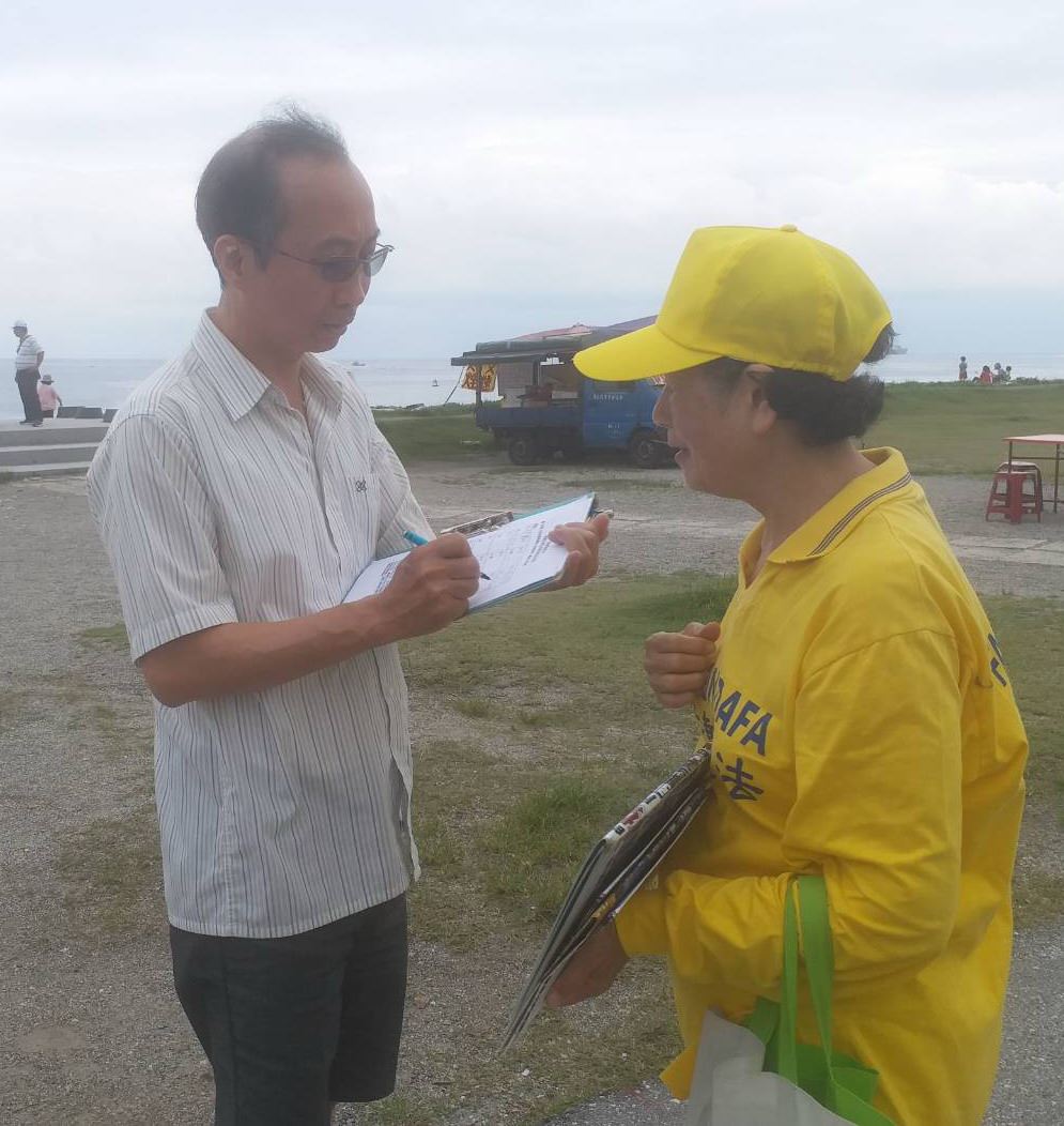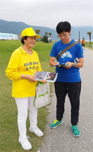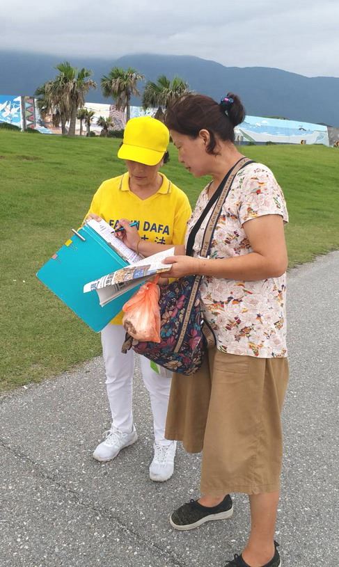 从台北来花莲游玩的王先生表示,看过《大.纪.元;时报》,明白中共迫害法轮功的真相,心里很震撼,觉得中共封锁新闻,老百姓被蒙骗、不知真相很可怜。他签名声援中国民众控告江泽民迫害法轮功,也表示支持法轮功学员在景点讲真相,让更多的人明白事实。