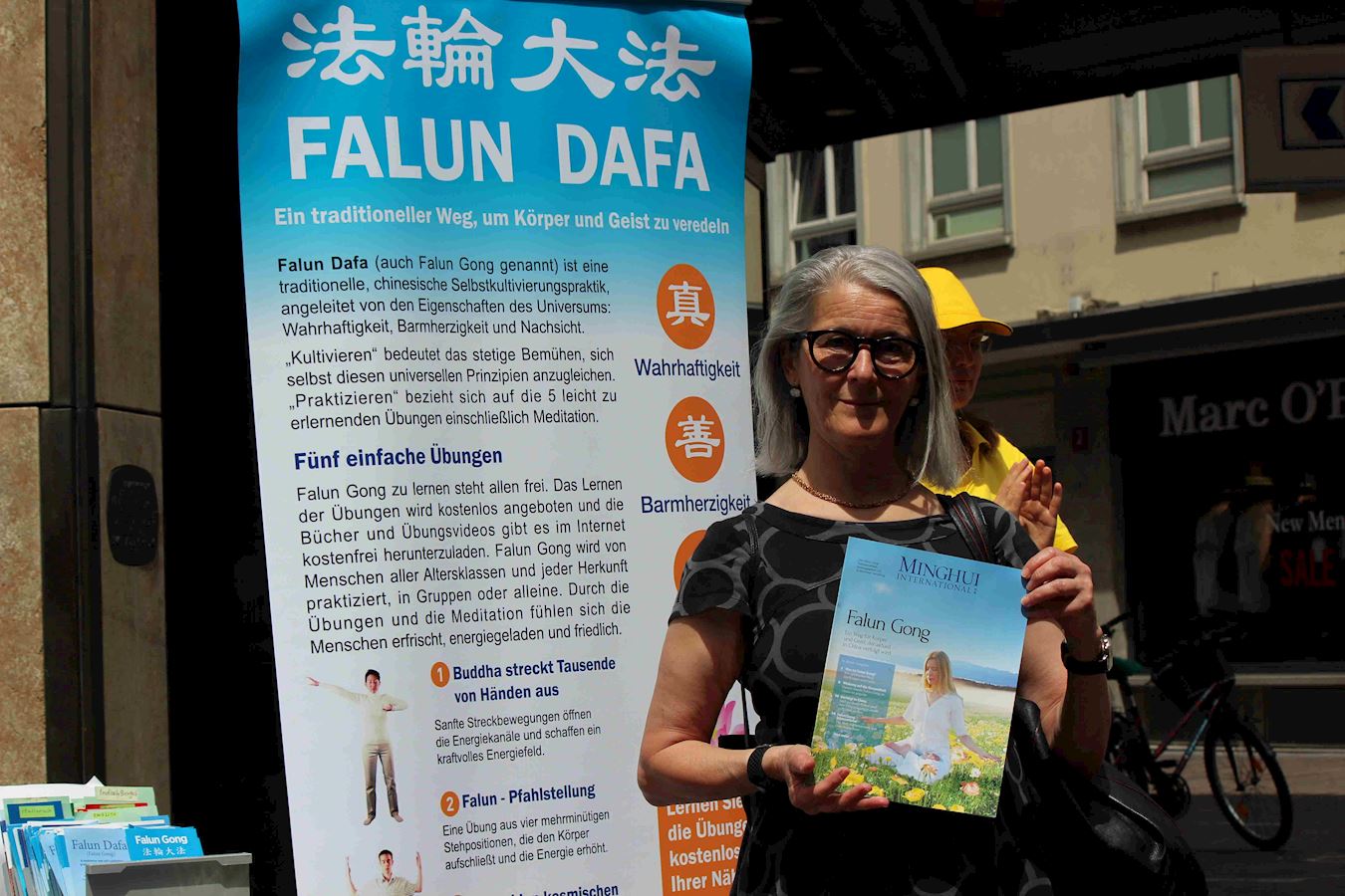 乌特(Ute)女士就曾在苏黎世(Zurich)湖畔看到过法轮功学员的炼功点,她感叹道:“我觉得特别好,他们散发出的(能量),以及他们的动作,是如此的美好。我当即询问这是什么,得知他们在炼法轮功。”