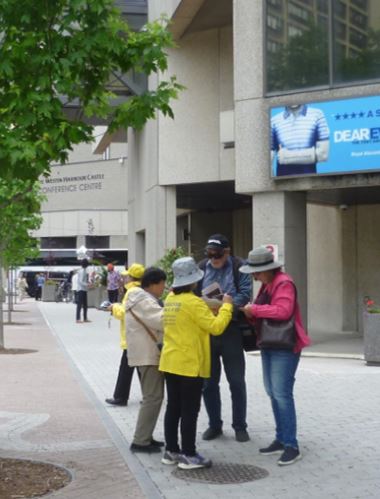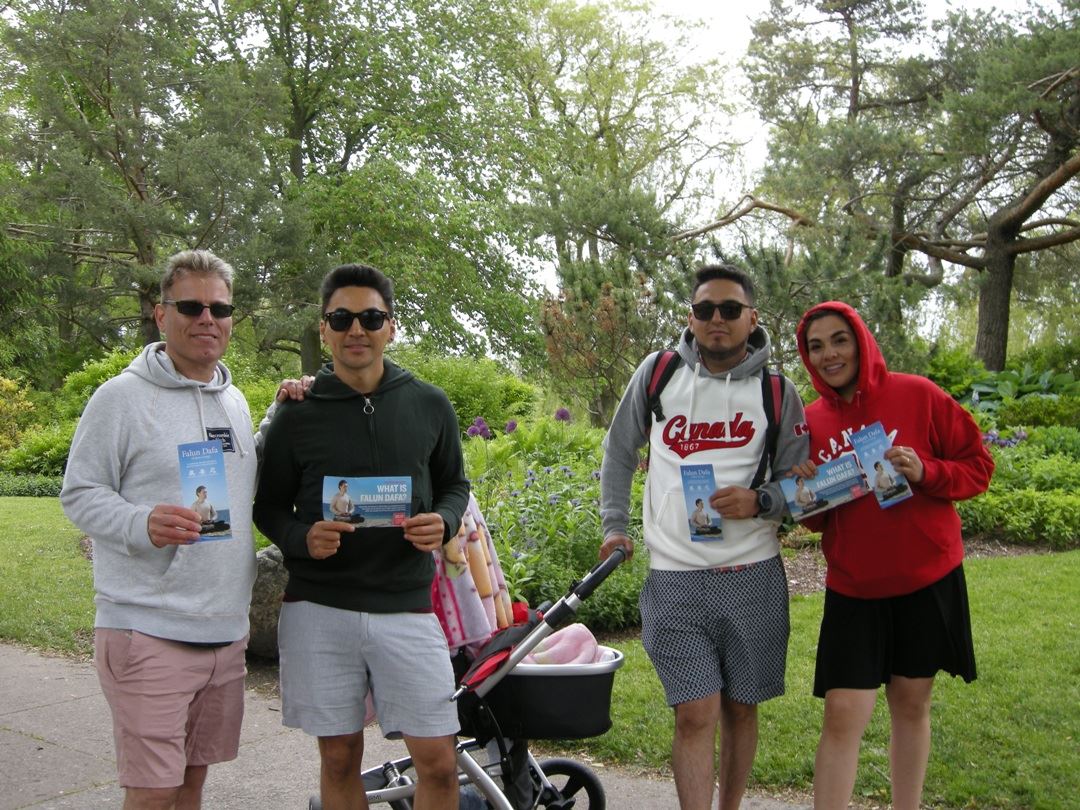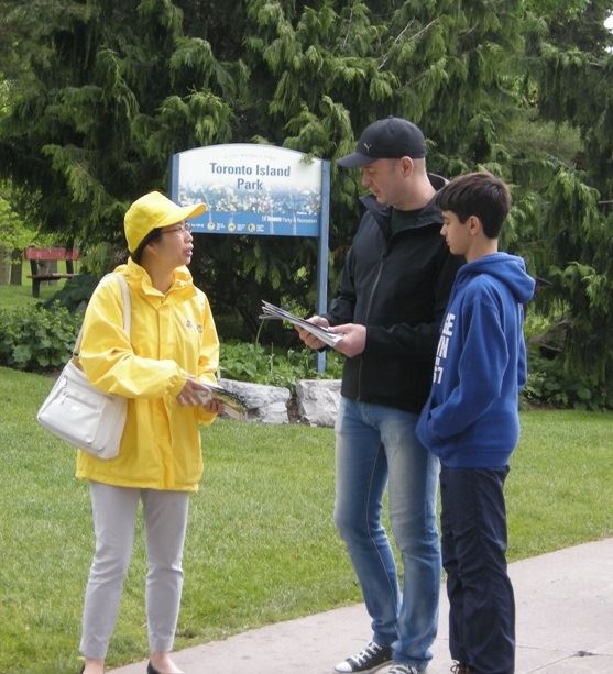 连续周末两天,多伦多法轮功学员都一早来到景点给民众介绍法轮功,进行功法演示并义务教功,也向人们揭露中共对法轮功的迫害。