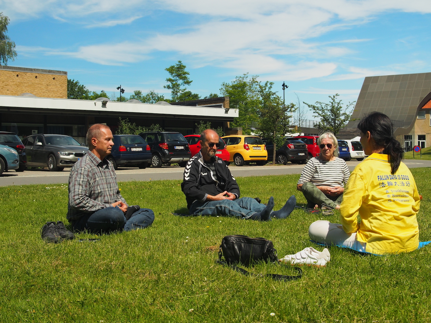 不少参展人对别的展位也很感兴趣,互相之间有良好的互动,一位参展的丹麦女士听完介绍法轮功后,非常有兴趣把法轮功推荐给她所在地的社区。她说:“我居住的地方环境很好,正是学炼法轮功的好地方。我会向当地的社区推荐这个功法”。