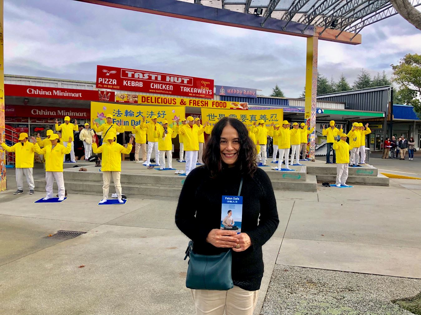 吉娜·埃德蒙兹(Gina Edmonds)是一位新西兰毛利部落酋长的女儿,住在北边的毛利部落。她告诉记者,她炼法轮功整整有十一年了。有一位学员曾经每两个星期去他们那里教功,从那以后,她每天带领着他们部落的人炼功。她激动地说:“我能感受到能量场,整个能量场非常强,就象是由光组成的气泡。我刚才在泊车的时候,就已经感受到了!学员们(打坐)很专注,我太喜欢了!这样的场面就象是在提醒着人们,我们曾经来自同一个地方,而现在大家都忘却了那种宁静和安详。人们整天忙于奔波,(心灵)不再宁静。”