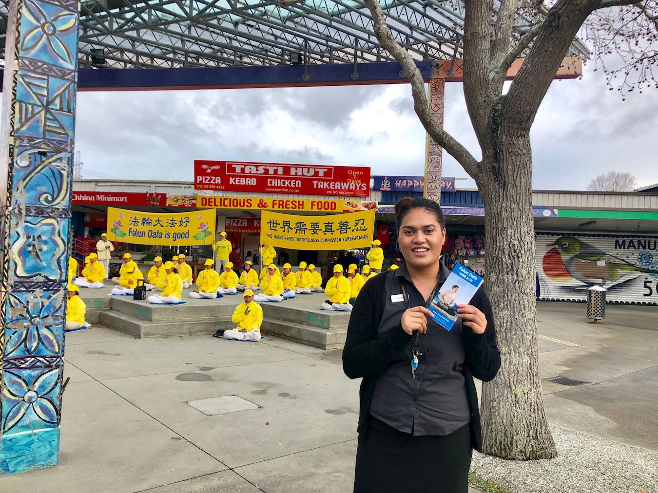 英黛(Hynda)是附近一家贷款公司的职员,她告诉记者,法轮功学员的炼功场面非常祥和,每一个人都看上去很平和,他们在这里炼功,希望和别人分享他们的收获。对于发生在中国的残酷迫害法轮功事件,她说,我很伤心,每一个人都应该有信仰的权利,尤其是这么样一个平和的功法,法轮功学员只是想实践他们的信仰,对于中共活摘人体器官牟取暴利,她更是震惊,她表示,每个人都应该享有基本人权,不能强制他们去做什么。全世界人们都需要知道在中国发生什么样的事情,现在的曝光率还是不够。她希望新西兰政府也能禁止本国的公民去中国做器官移植手术。