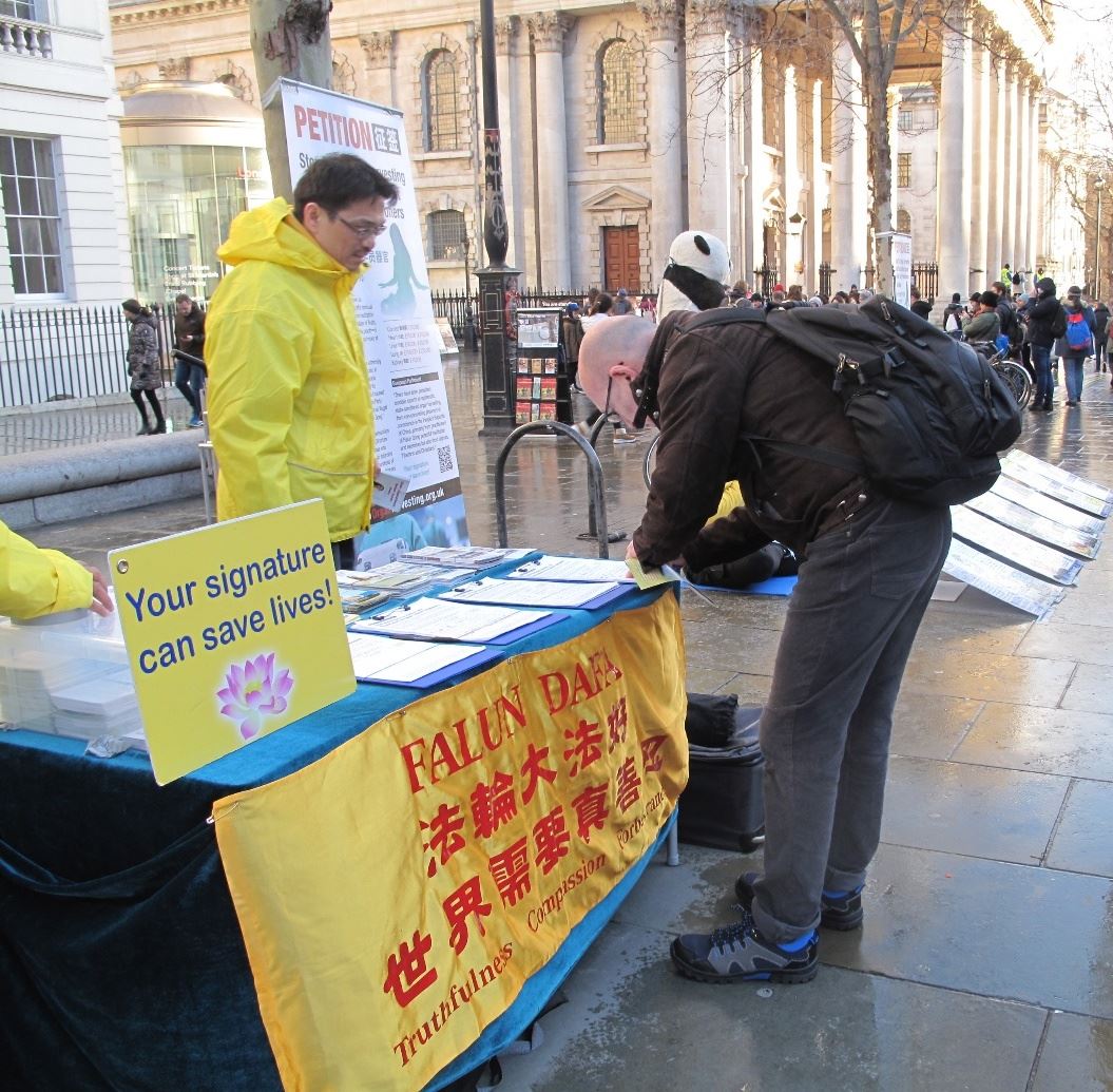 ![]() 图1:二零一九年二月十日,黄诗顺与其他法轮功学员一起在伦敦圣马丁广场弘法 |
