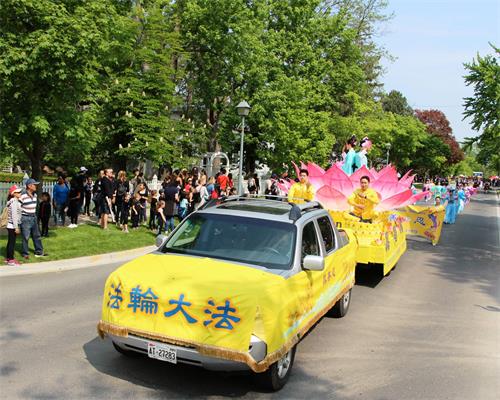 当法轮功学员的花车和仙女队经过时,莱斯利(Lesley)女士不停地给他们拍照。她说:“这个仙女队很美。”在被问到是否知道法轮功,及其在中国被迫害的现状时,她表示自己了解法轮功在中国被迫害的情况,她说:“现在是在加拿大,这些法轮功修炼者们可以有他们的自由。”