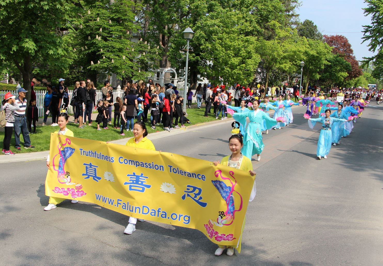 ![]() 图1-3:二零一九年六月一日,由多伦多法轮功学员们组成的天国乐团、花车、及仙女队,应邀参加了在加拿大多伦多万锦市的Unionville社区的渔人村嘉年华节日游行。 |