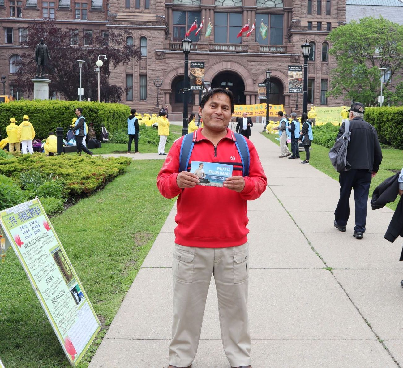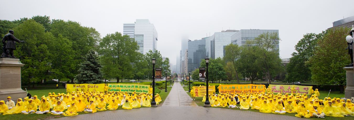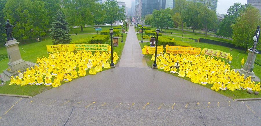 这次活动的负责人张先生表示:“今年是法轮大法弘传二十七周年,全世界各地都举办了很多相关的庆祝活动。我们选择了多伦多市很有象征性和代表性的地方来举办我们活动,同时,这周是议员们夏天休会前最后上班的一周,我们的集体炼功,那些议员们都是可以在自己楼上的办公室看到的,这也可以向更多世人展现法轮大法的美好。”