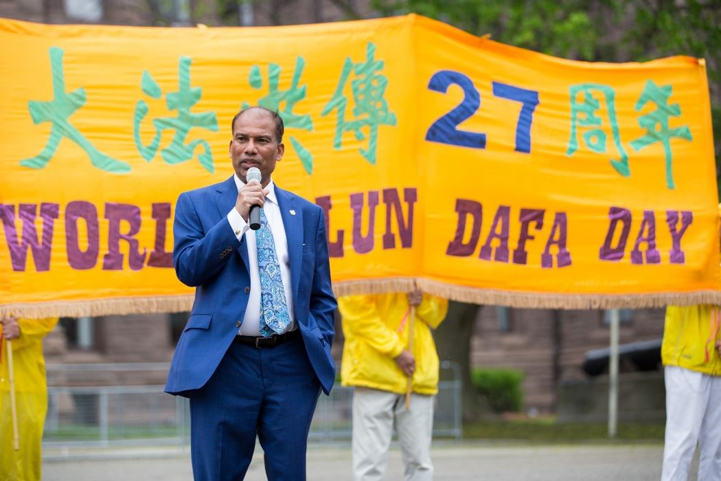 省议员卡纳帕蒂(Logan Kanapathi)在演讲中提到他自己在一九八三年为逃避迫害来到加拿大,他赞扬法轮功学员来到安省议会前,实践“宪法赋予的权利”。