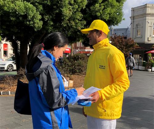 新西兰奥克兰民众在商业中心公园了解法轮功(图) 【明慧网】