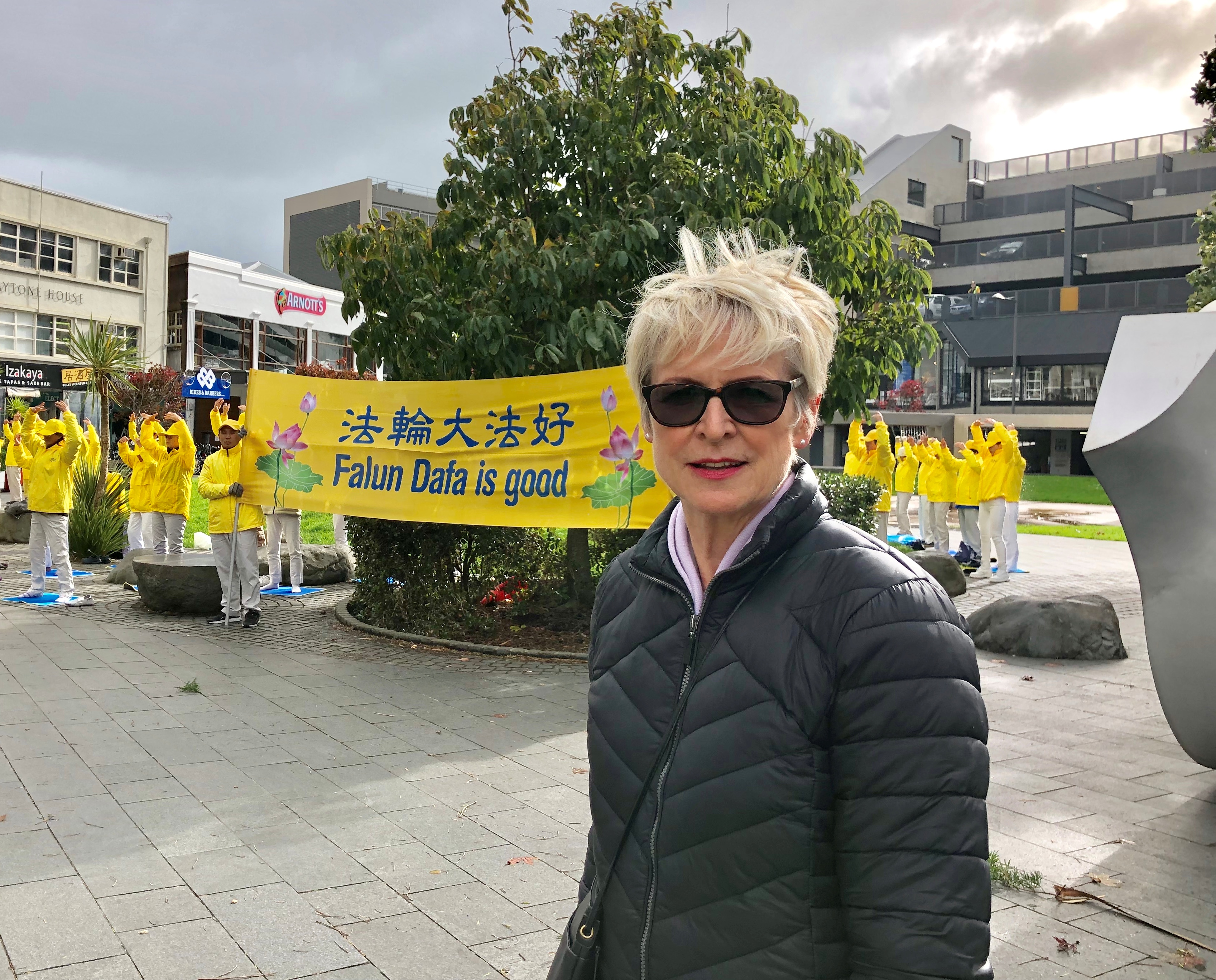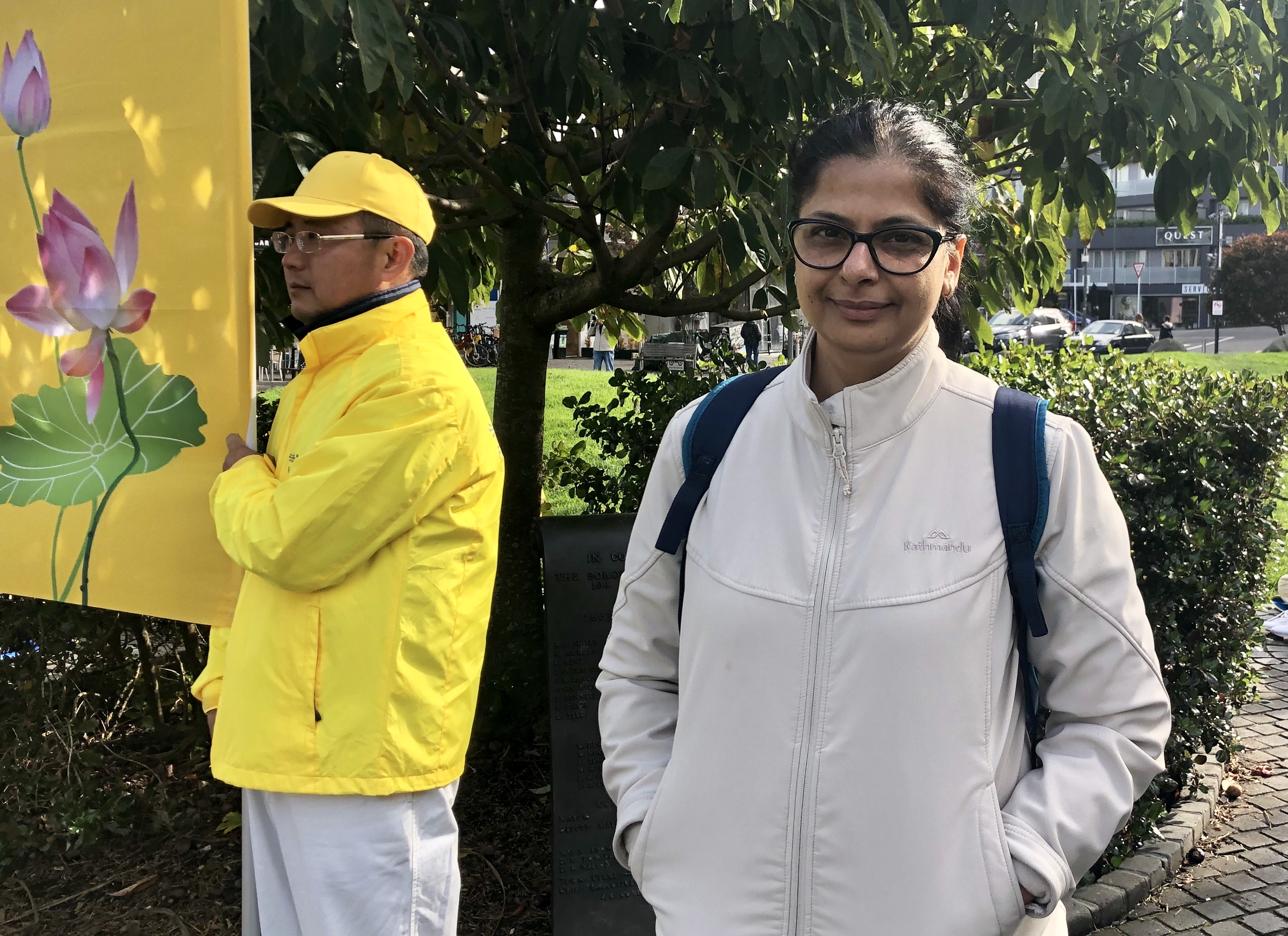 埃尔帕·米娜(Alpa Minar)在银行工作,移民来新西兰十七年,从发资料的学员那里听说了在中国发生的活摘法轮功学员器官的事。她说,如果你们没有站出来,没有人会知道这些事,但是我个人有听说过在中国发生的这些事。今天很高兴,看见法轮功学员们在这里,让公众来关注在中国发生的事。他们打坐炼功,这是非常和平,理性的。以前我有时会路过,见到他们站在那里和平呼吁,现在我拿到资料了,我会好好了解真相。