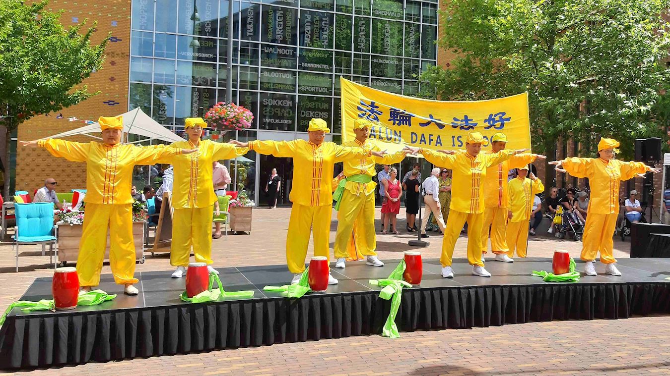 ![]() 图1:法轮功学员在荷兰多元文化节表演功法 |