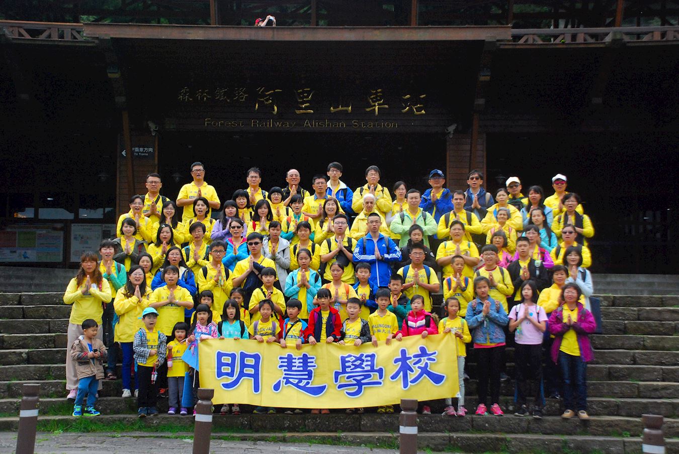 ![]() 图1:全体学员在阿里山车站拍照向师父问好 |