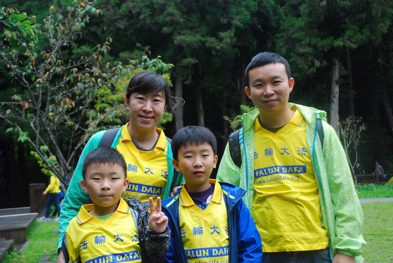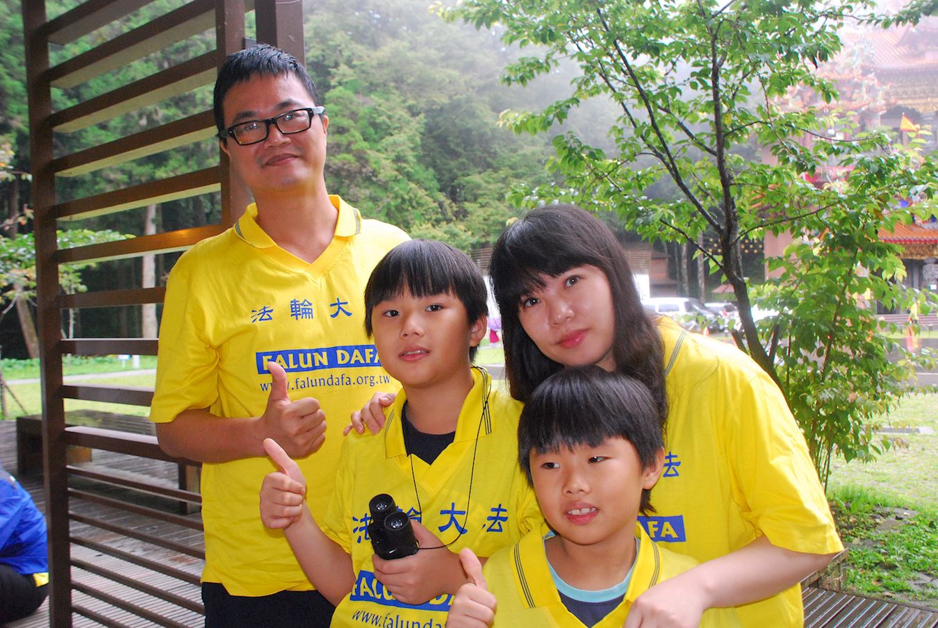 学员洪庆升、简淑芬夫妻带了升小四的翊胜、升小二皓翔来阿里山讲真相,他们知道大法对社会有益,想让大家了解法轮大法是正法,简淑芬说:“小孩小时后常生病,我跟先生从小也是虚弱体质,常吃药,我认真思考下一代也要这样吗?隔天在教室外遇见一位学姊,告诉我他们的孩子修炼法轮功身体变比较强壮,也少吃药,我们这样走进大法。