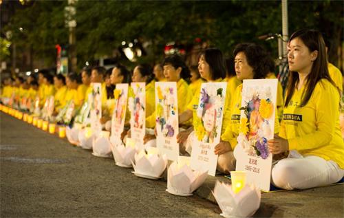 ![]() 图5~7:二零一九年七月十三日晚八点至十点,多伦多法轮功学员在中领馆前举行了反迫害二十周年烛光悼念活动,他们比邻而坐,悼念被中共迫害致死的中国大陆法轮功学员。 |