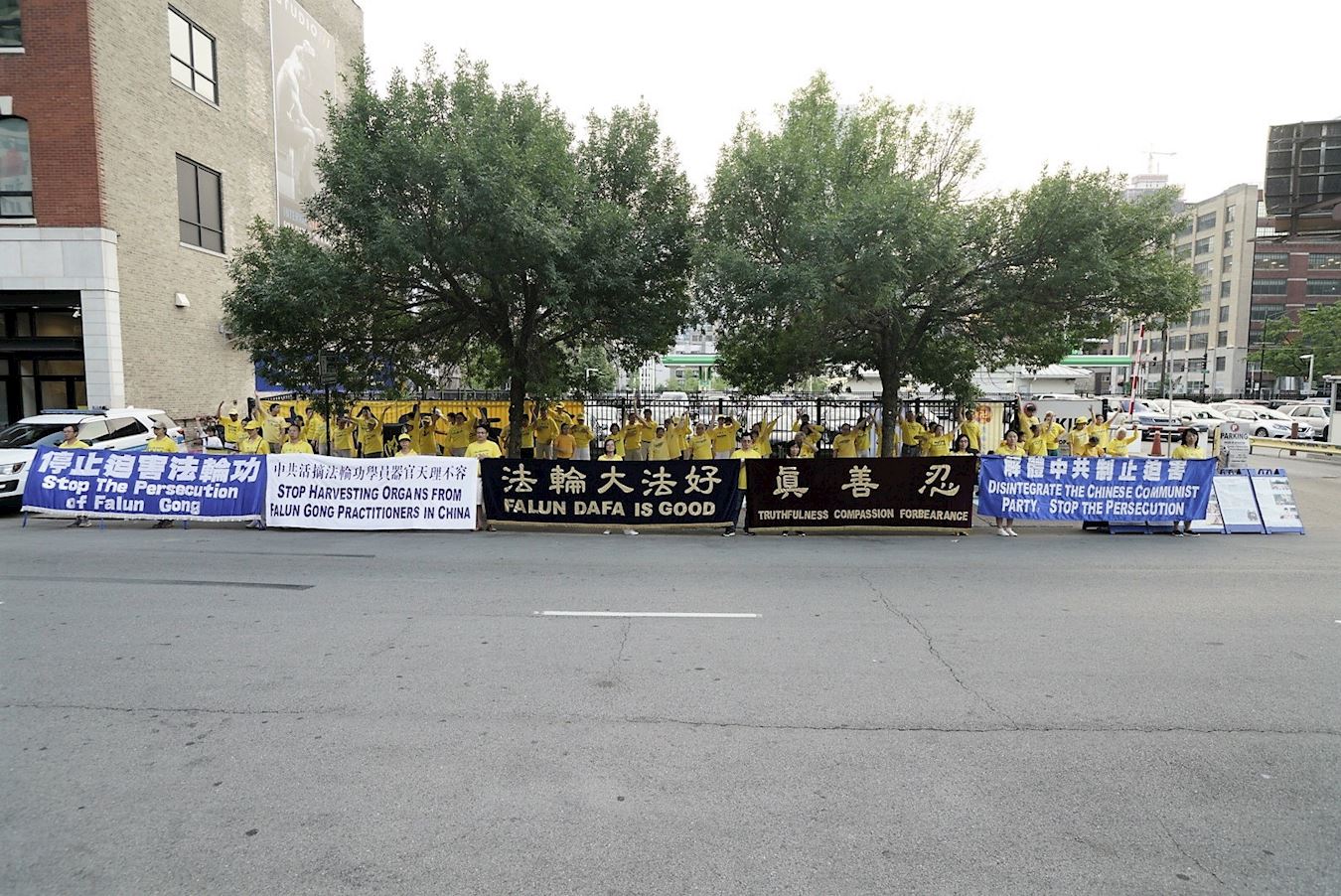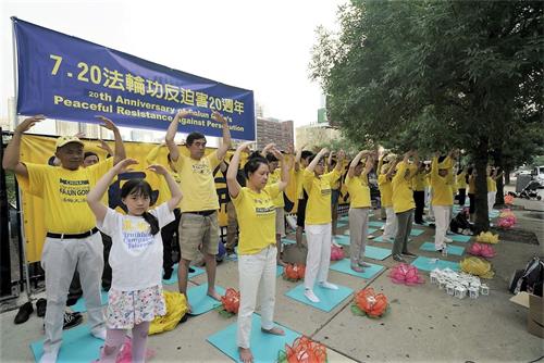![]() 图1~4:二零一九年七月十三日,大芝加哥地区及周边部份法轮功学员聚集在芝加哥市中心的中领馆前举行集会,揭露中共对法轮功的迫害二十年 |