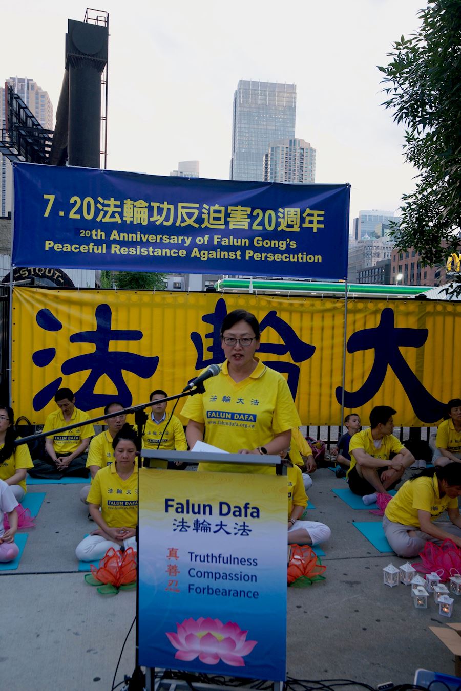 集会上学员刘女士揭示:“一九九九年七月二十日,中共与江氏集团动用整部国家机器迫害法轮功,动用一切媒体、司法、军警、特务、党政、外交,进行了全方位的迫害,对法轮功学员非法关押、洗脑、毒打、电刑、强奸、强迫注射破坏中枢神经药物,乃至活摘器官,惨无人道的迫害手段令人发指。”