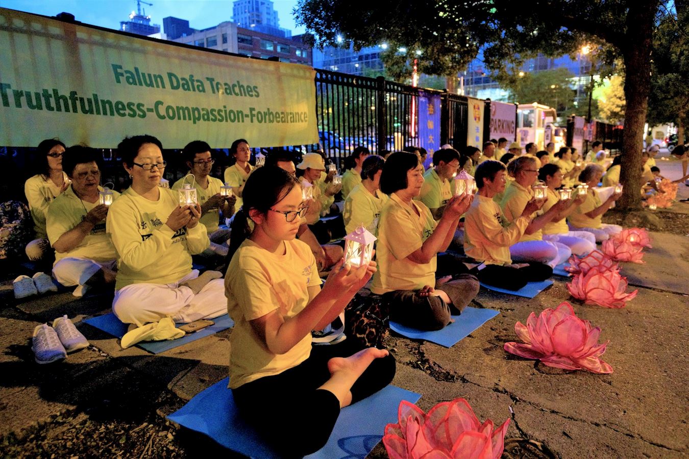 来自芝加哥的凯文(Kevin)和大卫(David)看到法轮功学员烛光守夜的场面,安静祥和,就坐下来和学员坐在一起。听到真相后,表示这就象当年基督徒被迫害的故事一样,他们主动提出可以把他们的照片放到网上,表达他们对法轮功的正义支持。