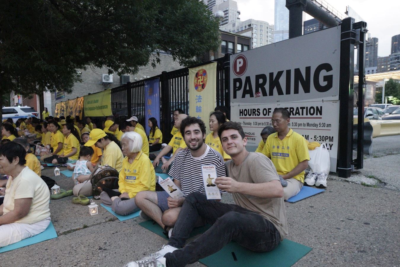 ![]() 图10:来自芝加哥的凯文(Kevin)和大卫(David)看到法轮功学员烛光守夜的场面,安静祥和,就坐下来和学员坐在一起。 |