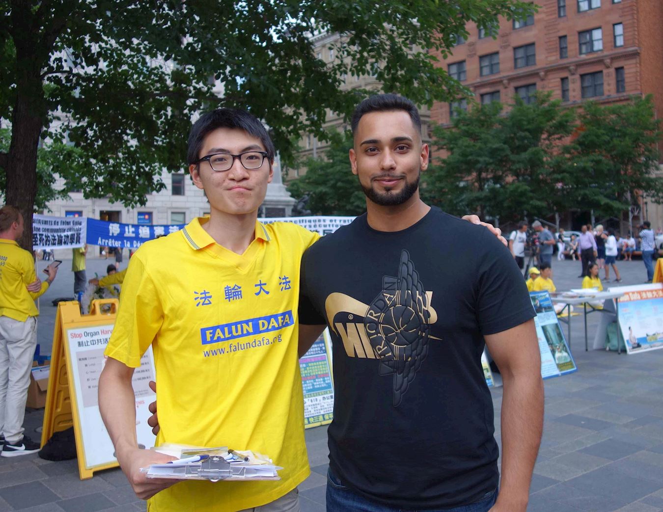 来自安省的印度青年盖斯伯勒(Gasbreet)被法轮功学员的集体炼功场景所吸引,他主动过来签名表示支持,“每个人都应该练习打坐,他带给人健康和心灵改善,让人更接近神,获得心灵平静。”对于中共迫害法轮功,他明确表示:“这是错的,非常糟糕,我反对迫害,每个人都应该站出来反对。”