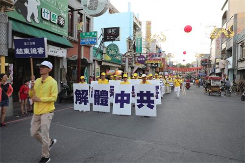 龚先生在店外观看游行,他表示在台南赤嵌楼景点也看过法轮功学员炼功讲真相,他表示法轮功学员给人的感觉很祥和,他很感佩法轮功学员不畏中共蛮横残暴的迫害,顶着巨大的压力坚忍不移的精神,尤其是中国的法轮功学员更是冒着生命危险向世人传递真相,让世界各国的民众明白中共的极权暴政已到了穷途末路。龚先生说:“有你们真好。”