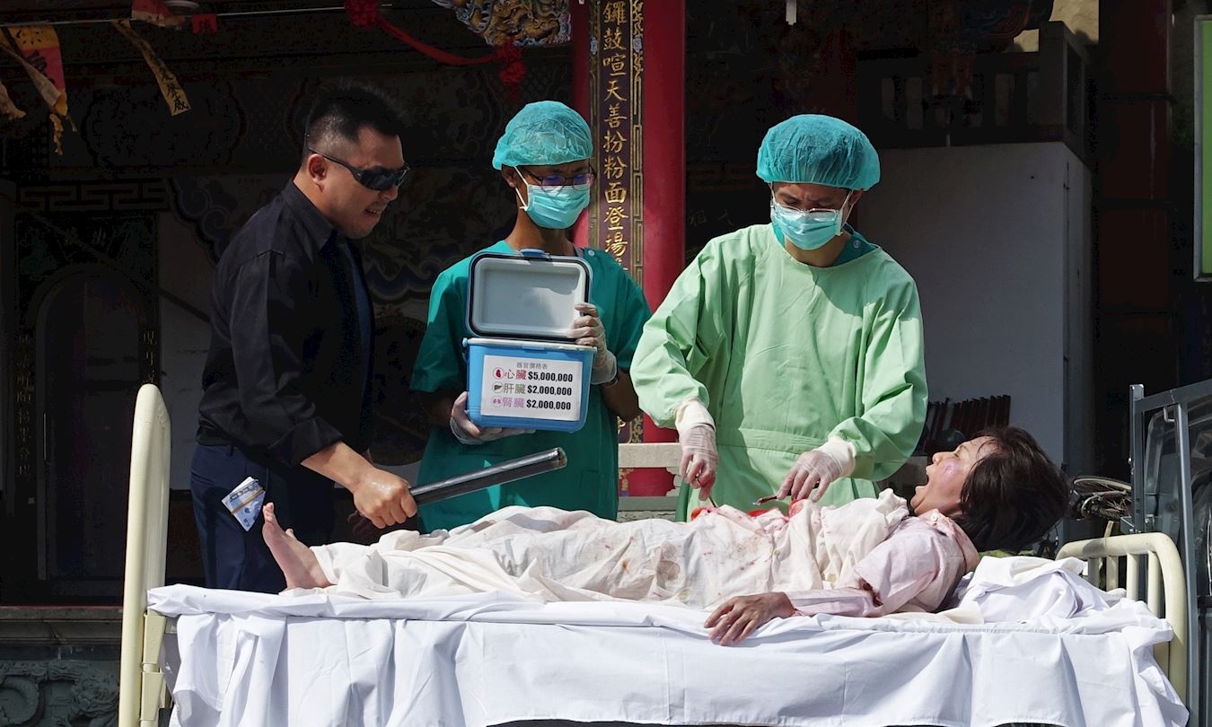 ![]() 图6:活摘器官行动剧:医师在未施打麻药的情况下,摘除法轮功学员器官,与中共官员勾结,谋取暴利 |