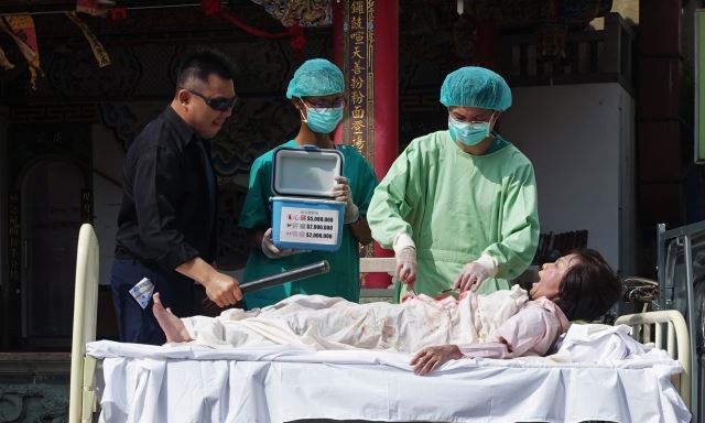 金门街头上演的活摘器官行动剧引起民众关注。一位扮演助理的医生,手上拿的蓝色保温箱中,标示着各种器官贩卖的价格从二百万到五百万不等,黑市交易的不法手段,让民众无不感到震惊。曾在金门医院担任感控室主任的郑元瑜医师也回到金门,担任反活摘器官行动剧医师的角色。