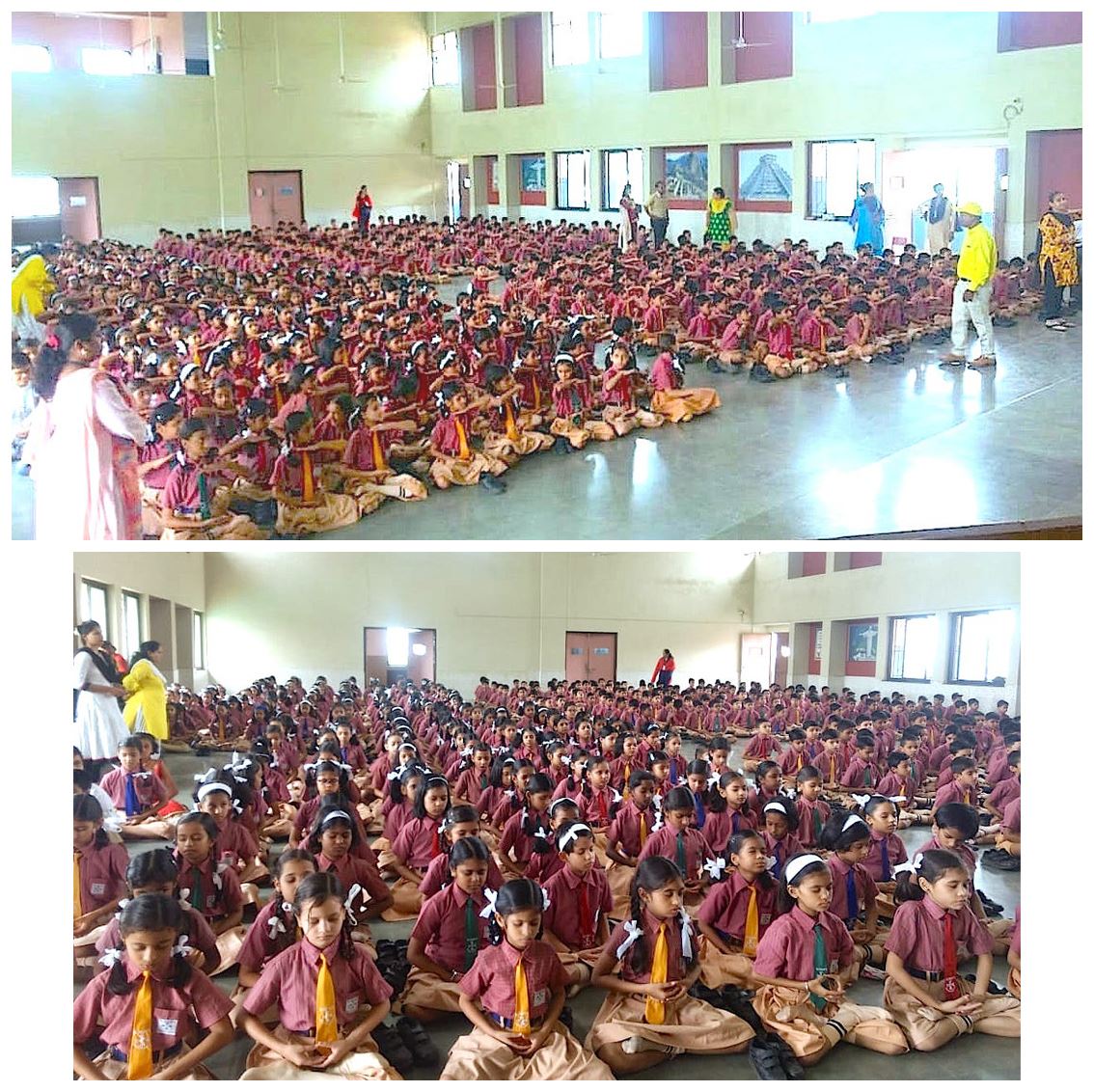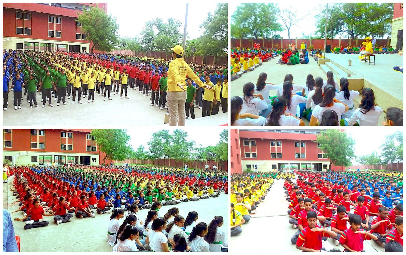 ![]() 图1:印度纳格普市申德惹韦尔斯中学的初中高中部的学生们学炼法轮功功法 |