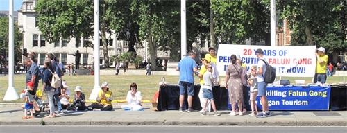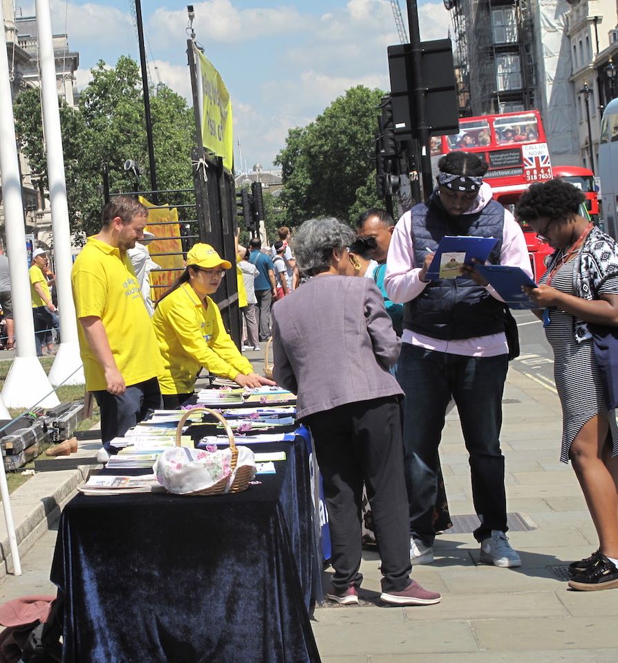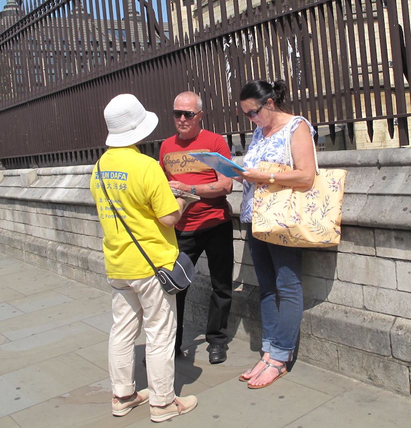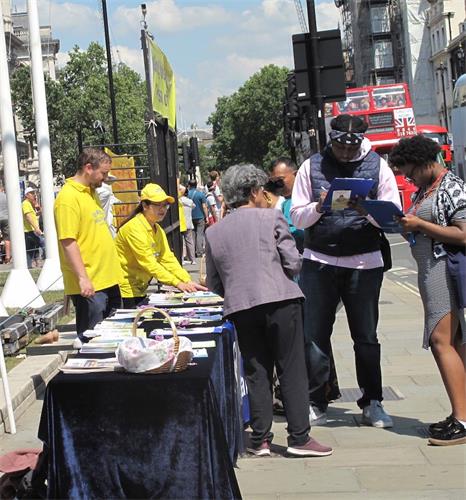 ![]() 图1~7:二零一九年七月十六日,法轮功学员在英议会大厦外的人流里发传单、讲真相、征签反迫害 |