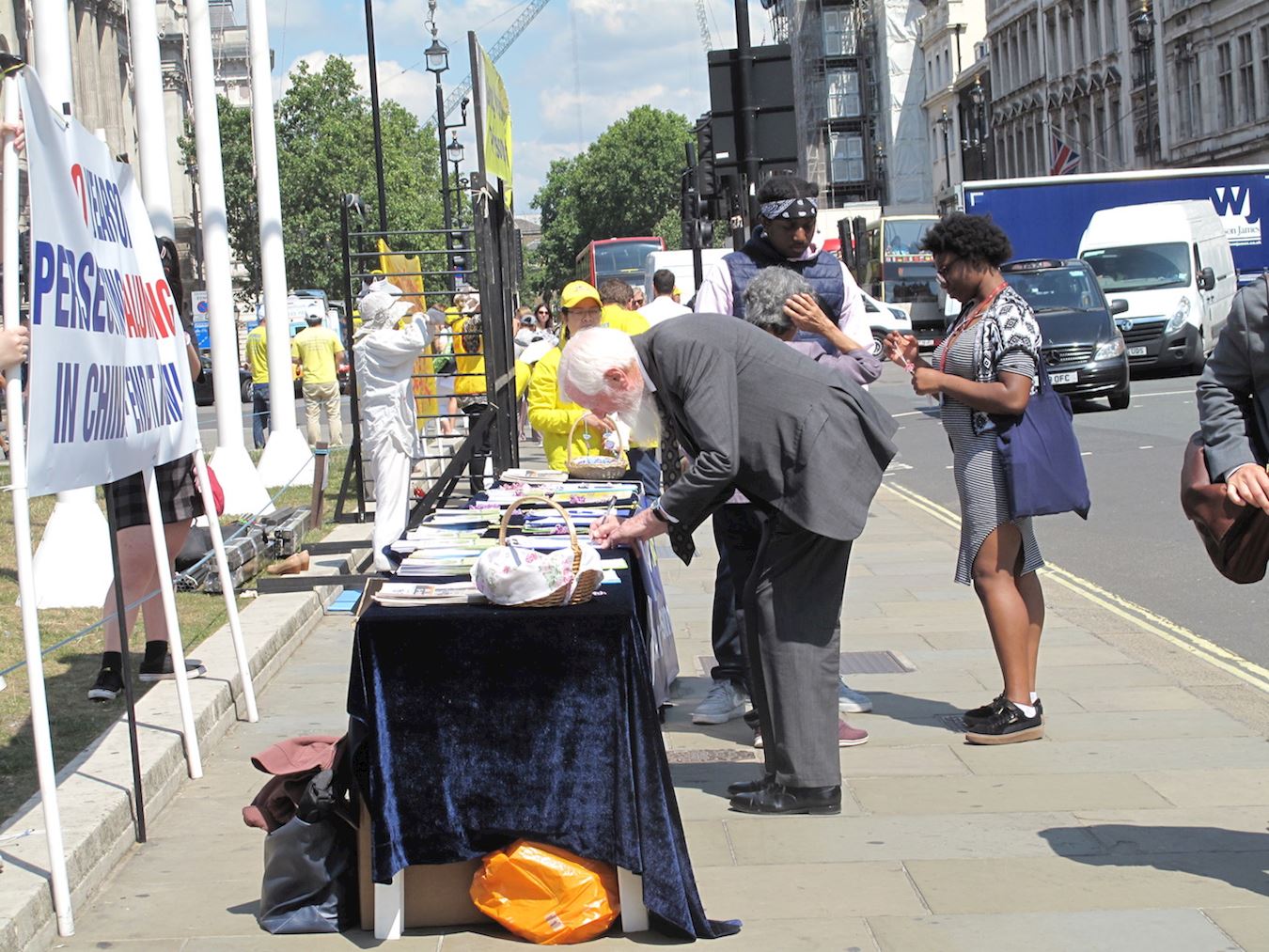 英国上议院希尔顿勋爵(Lord Hylton)多年来一直对法轮功学员的和平理性反迫害表示理解和支持,十六日他来到法轮功学员在议会大厦前的活动现场,径直走到桌前签名,他认为让广大民众了解法轮功真相“非常重要”,并表示要继续支持法轮功学员,希望尽早结束中共对法轮功的迫害。
