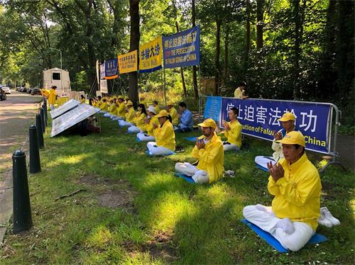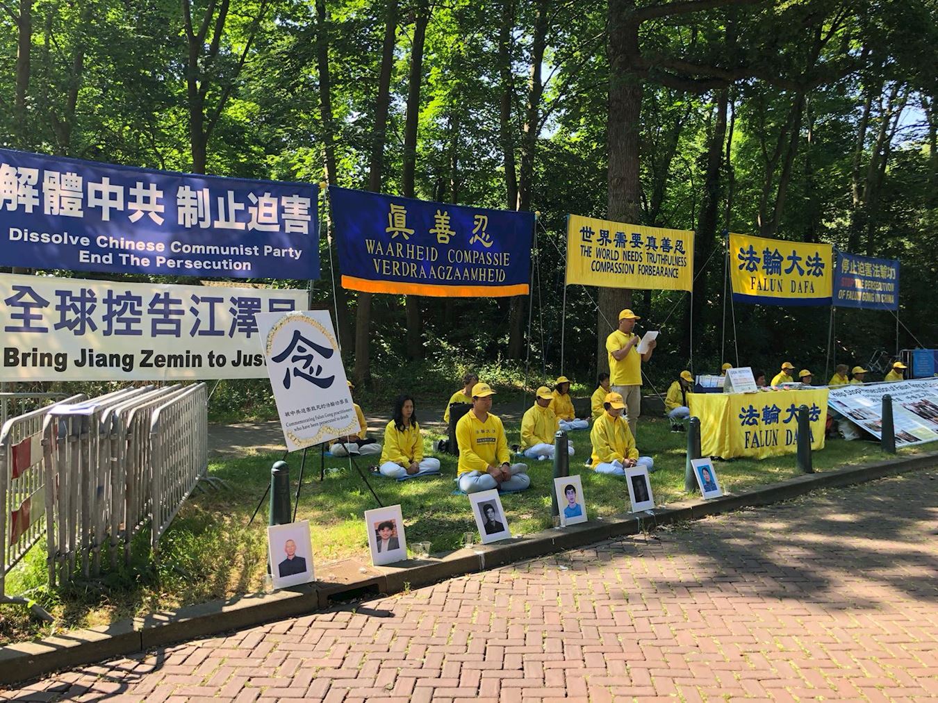 ![]() 图1~3:二零一九年七月十七日,荷兰法轮功学员在海牙中领馆前举行集会和烛光悼念 |