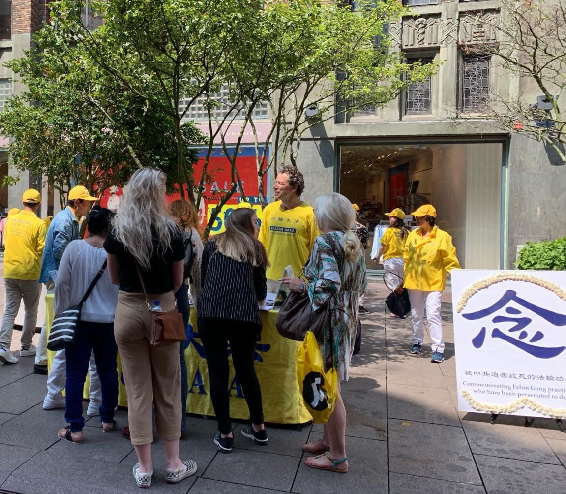 一位荷兰人听明白法轮功学员给他讲的真相后表示中共对信仰自由的迫害应当受到全世界各国政府的谴责,他说他为荷兰政府只顾经济利益去跟中国做生意而感到羞愧。